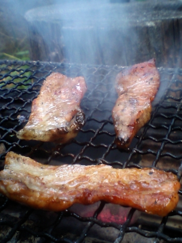 キャビンが林の中にあるせいか、たいした冷え込みもなく、自然の中で食を満喫。