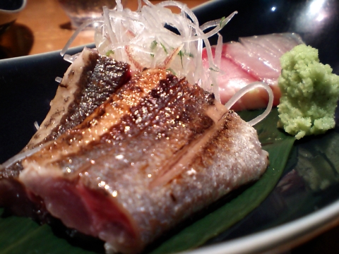 ささみ刺しに始まり、炙りサンマ に しめ鯖、鯛にカンパチ(だったかな?)。もどり鰹はニンニク醤油で。