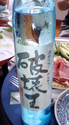 写真は、昨年友達にもらって寝かしてあった「破壊王」という芋焼酎。故プロレスラー橋本真也にちなんで名付けられたものだそうです。アルコール度数が43%と高く凍らないため、冷凍庫でキンキンに凍らして(凍らないけど)飲む。ブルーのボトルも涼しげな、夏向きのお酒です。