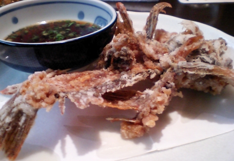 このお店は揚げモノがホントにおいしく、頭までカラッと揚がっていて、バリバリッと食べられる。