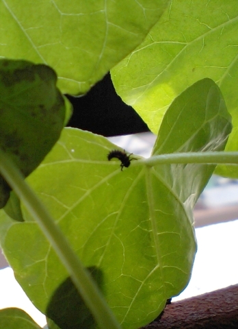 ふとバルコニーの朝顔に目をやると、大量発生していたアブラムシがほとんど居なくなっている。よーく見ると、てんとう虫の幼虫が2匹、せっせとアブラムシを狩ってくれていた。ようやく救世主登場!農薬なんて使わなくても自然がなんとかしてくれる(こともある)のだ。