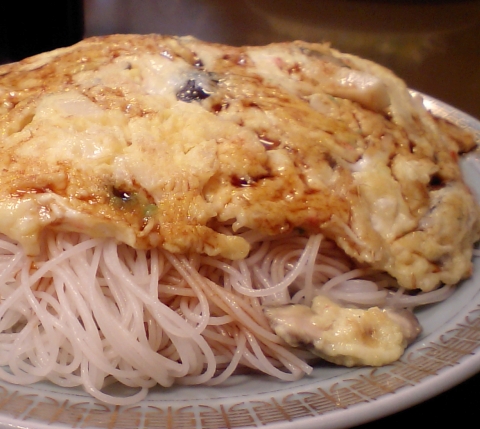 メニューはシンプルで、ビーフンは「焼き」と「スープ」があり、「普通」「五目」「蟹玉」の3種、量が小・中・大と選べる。常連らしきオッチャンは、「焼き」の小と「スープ」の小を注文していたが、自分は焼きビーフンの蟹玉で。