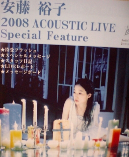 さてさて、ナマ安藤裕子。毎日のように聞いてきた曲をナマ歌、ナマピアノ、ナマギターで...何だかとっても贅沢。席も前から14列目の中央、ちょうど通路を挟んだ最前列だから見やす上に近い。ストレートに歌声が伝わってくるオトナなライブって感じで、とっても良かったです。