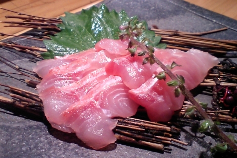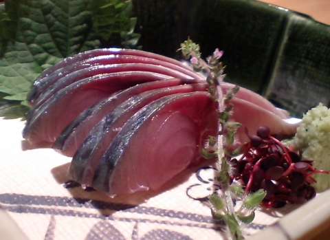 まずは、真サバのお造り。軽くシメたシメ鯖のほうが好みだが、全くシメてない素のサバ刺しってのも中々食べられないですからね。とろっとしてます。