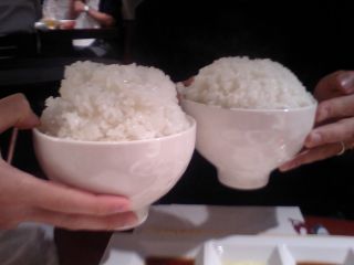 そして、今回のもう1つの目的は写真にあるマンガ盛り。この倍くらいの盛りっぷりを想像してたので多少期待ハズレなところもあったが、こぼれないようにかなり押さえつけてあるらしく密度が非常に濃いとか。これを食べた2人はその後言葉も少なく、「あのゴハンにやられた、肉が入らなくなった」と言っていた。
