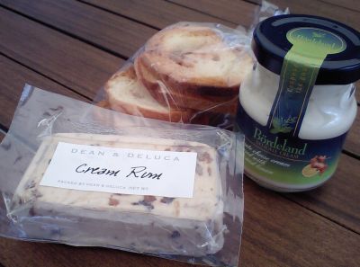 ブロック状のは Cream Rum というラムレーズンの入ったクリームチーズ。ラムレーズン以外にも、ココナッツ、オレンジの皮などが入ってます。これが見るからにウマそうなんだけど、ほんとウマイです!さすが小さなチーズ専門店から創業した DEAN&DELUCA !