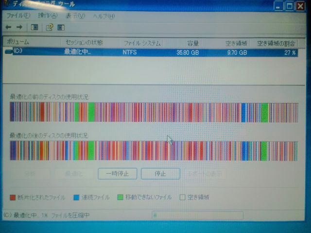 ※デフラグせず断片化しまくって、ポールスミスのマルチストライプパターンみたいになってたPCを記念撮影。
