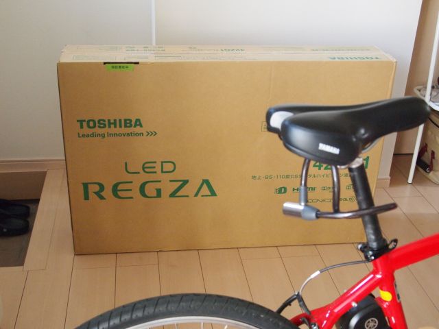 今日レグザが届いた。昨日不在通知が入っていて、午前中に再配送を申し込んでおき、朝9時に起きて待っていたのに、来たのはギリギリの11時55分。たしかに午前中だけどねぇ。おかげで開梱する間もなく出勤。設置は今日の夜中だな..。