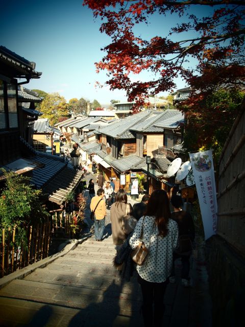 昨日に続き、紅葉のトンネルをくぐり、清水坂へ抜ける。八つ橋の皮だけのや、京漬物をお土産に購入。