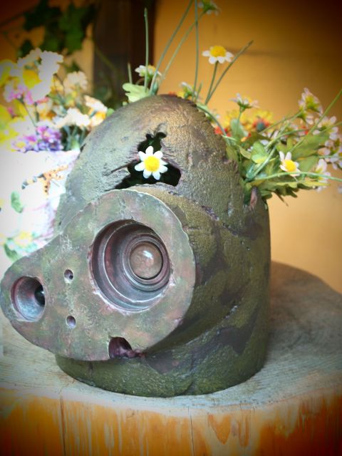 ところどころで骨董屋さんを覗きながら二年坂へ抜けていくと、脇の路地に目を引くオブジェ、「ロボット兵の思い」と名づけられたプランター。ジブリグッズを扱うお店でした。この系列店は行ったことがなく、見た事のナイグッズがたくさん。ついつい、とあるブツを買ってしまう。