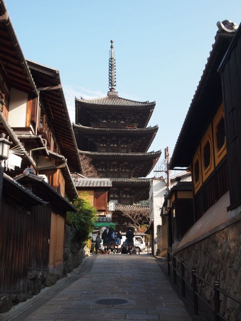 茶わん坂を上りきると、清水寺の三重塔が見えてくる。