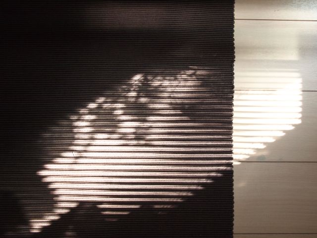 ※モミジの影、だいぶ部屋の奥まで日が差し込むようになってきた。