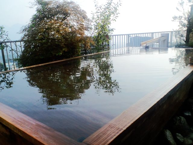 翌朝、もういちど屋上にある露天風呂へ。タイミングよく誰も居なかったので、貸切り状態。