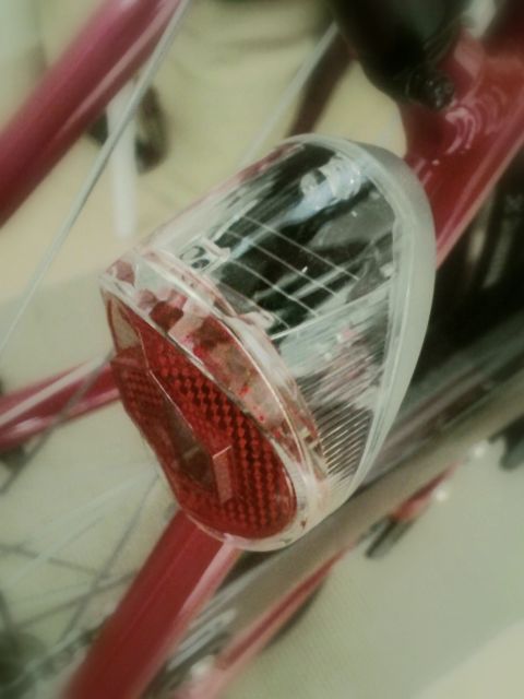 ※夜危ないから、ソーラーパネル付きのリアライトを装着!