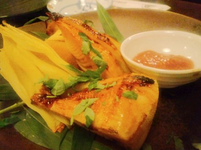 春野菜とタイ子の煮付け。「タイ子って何?」って思ってしまったが、タラコならぬタイコ、鯛の卵巣です。