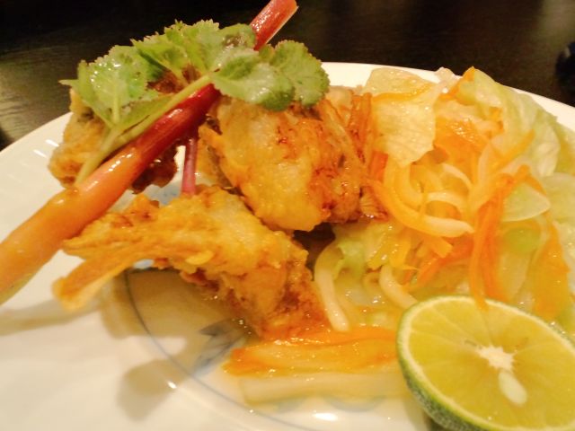 ※写真はランチで食べたトラフグのから揚げ。