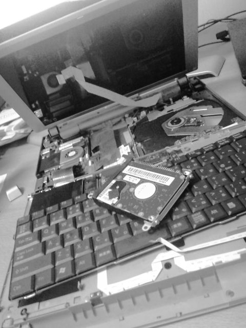 自宅でノート PC を分解し、HDD を交換。再び組み立て、リカバリディスクから OS を再インストール。インストールが終了し再起動するも、HDD エラーで起動せず。BIOS レベルでは認識できているのに..。