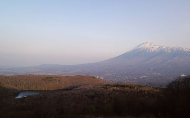 あきらめて、夕日の岩手山と大沼を見て引き返す。