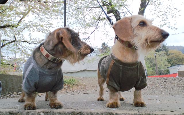 早朝6時過ぎで他に誰もいなかったため、アッシュとルティカもノーリードで木道を走り回って一緒に散策。