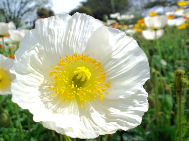 アイスランドポピー。「たくさん咲いてる~」と近づいていくと、結構間隔を空けて植えられていて、スカスカだったり..。