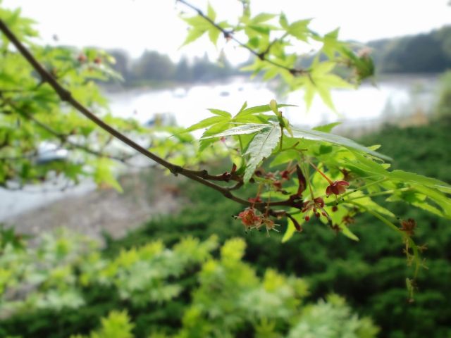 さりげなく葉っぱの裏で咲いてる もみじの花。