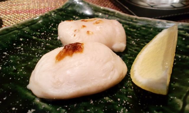 本日一押しは、天然とらふぐ の白子。白子は焼きがいちばん好きなのだが、オーダーおまかせしてたら、しっかり焼きで登場~。シンプルに塩とレモンでいただきます。ぷりっとしたガワの香ばしさと、とろっとろの中身が最高!