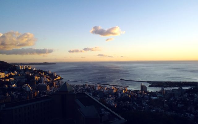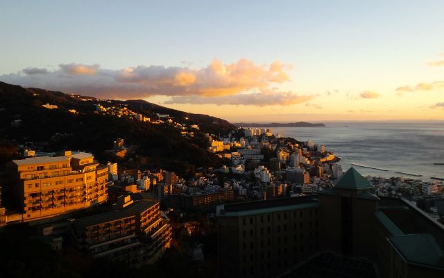 金曜の午前中で仕事を切り上げ、午後2時にはバスで出発。雨とは聞いていたが、嵐と言った方が良い豪雨の中、高速を走り2時間ほどで熱海へ到着。(写真は翌朝のモノ)