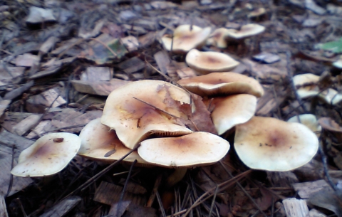 同じ白いキノコでも、こちらは粉っぽくてヤバげ。