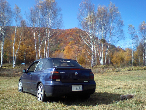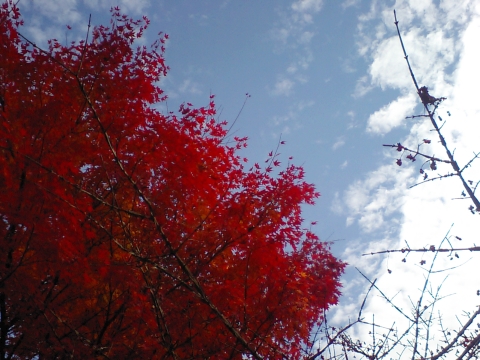 途中、八ヶ岳倶楽部前の紅葉が見頃だったので、車を停めて観賞。